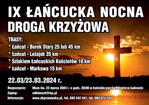 ZAPROSZENIE DO UCZESTNICTWA W IX ŁAŃCUCKIEJ NOCNEJ DRODZE KRZYŻOWEJ – 22 MARZEC 2024 R.