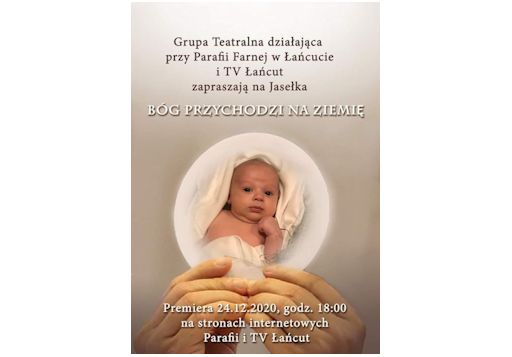 Grupa Teatralna działająca przy Parafii Farnej w Łańcucie i TV Łańcut zapraszają na Jasełka „BÓG PRZYCHODZI NA ZIEMIĘ” Premiera 24 grudnia 2020 r. o godz. 18:00 na naszej stronie internetowej a także na stronach Parafii iCzytaj dalej